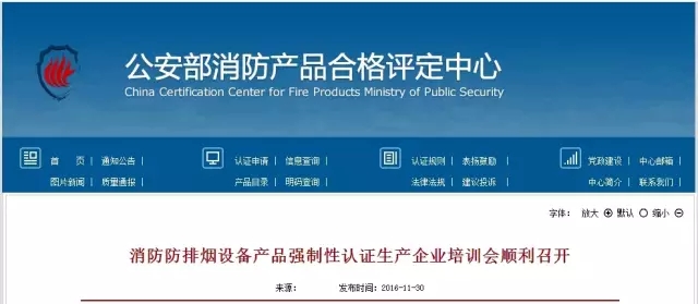 【轉(zhuǎn)自公安部消防產(chǎn)品合格評定中心】 消防防排煙設(shè)備產(chǎn)品強(qiáng)制性認(rèn)證生產(chǎn)企業(yè)培訓(xùn)會順利召開